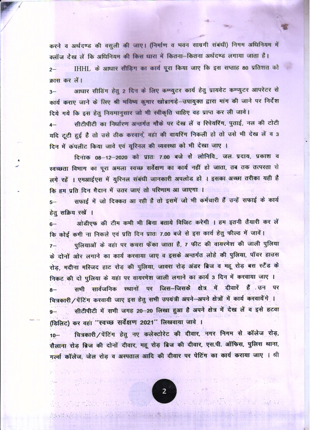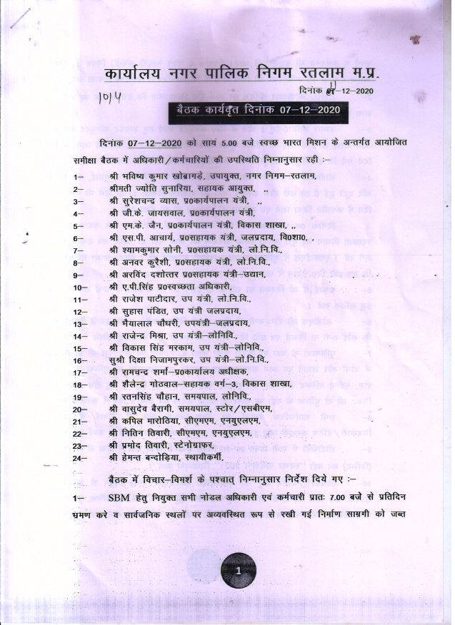 | 54 | बैठक कार्यवाही विवरण दिनांक 07-12-2020 को सांय 5 बजे, स्वच्छ भारत मिशन के अन्तर्गत आयोजित समीक्षा बैठक |